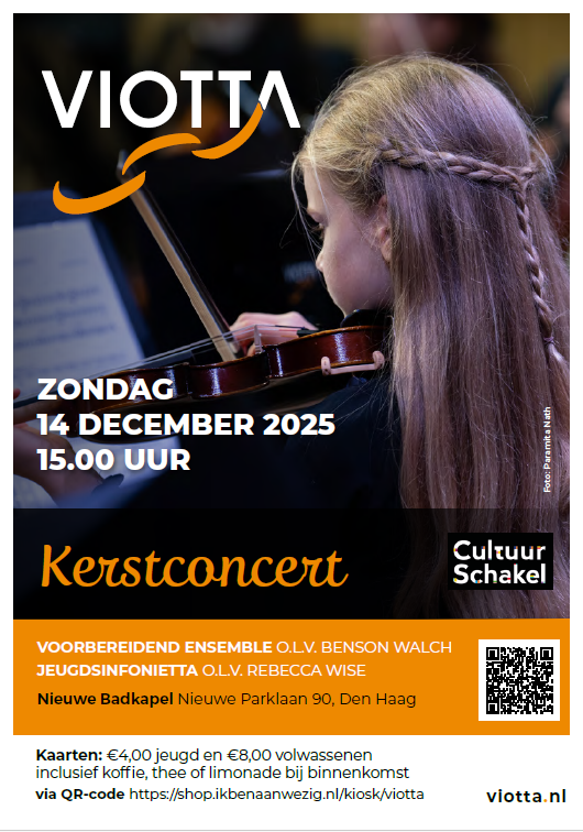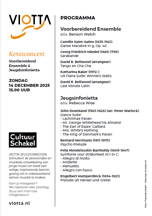 Het laatste concert van dit jaar wordt verzorgd door twee van onze orkesten binnen Viotta en wel te verstaan het Voorbereidend Ensemble en het Jeugdsinfonietta.